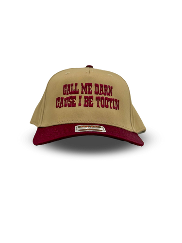Make a bold, playful statement wherever you go. This “Call Me Darn Cause I Be Tootin” hat features high‑quality embroidery on the front panel, blending humor and streetwear attitude into one standout accessory. Available in multiple color combinations to match your style, this adjustable cap is perfect for daily wear or gifting to someone with a sense of humor.