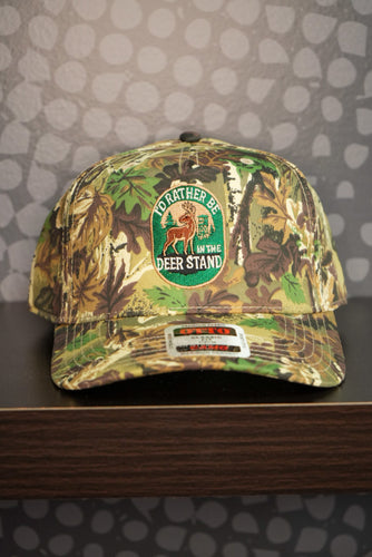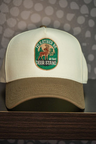 Show your love for the great outdoors with our “I’d Rather Be in the Deer Stand” hat — a rugged, vintage-inspired design built for hunters, country folks, and anyone who’d trade city life for a quiet morning in the woods.