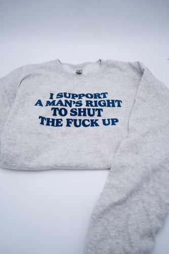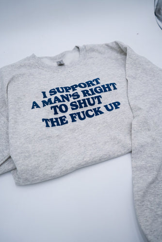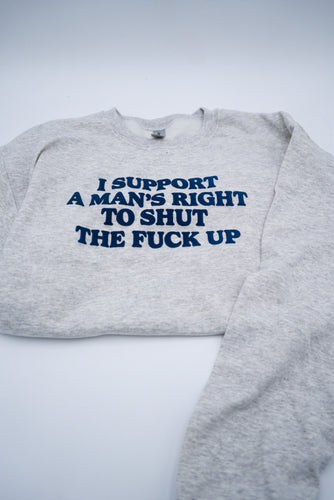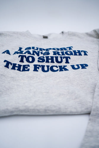 Say it with your chest — literally. The I Support A Man’s Right To Shut The F* Up Crewneck** is your go-to statement piece when subtlety isn’t the vibe. This bold sweatshirt uses puff screen printing to elevate its already unapologetic message, creating a raised, tactile design that feels as powerful as it looks.