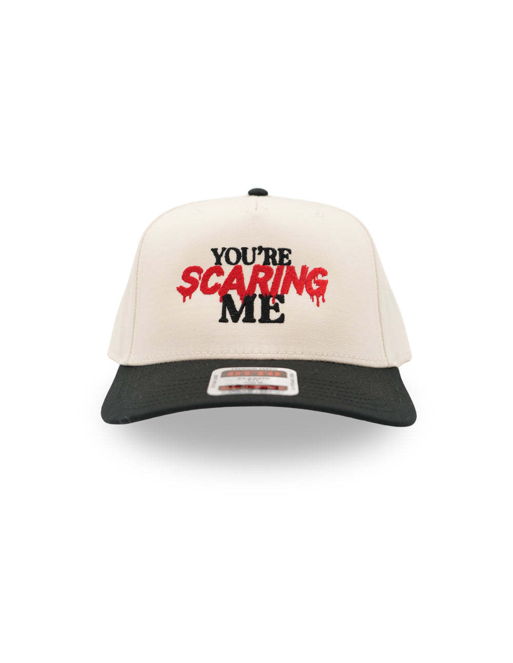 Serving subtle spooky vibes all season long, the You’re Scaring Me trucker hat is the perfect mix of sarcastic and seasonal. With crisp white embroidery on a classic black cap, it’s a low-effort way to celebrate Halloween without going full costume.